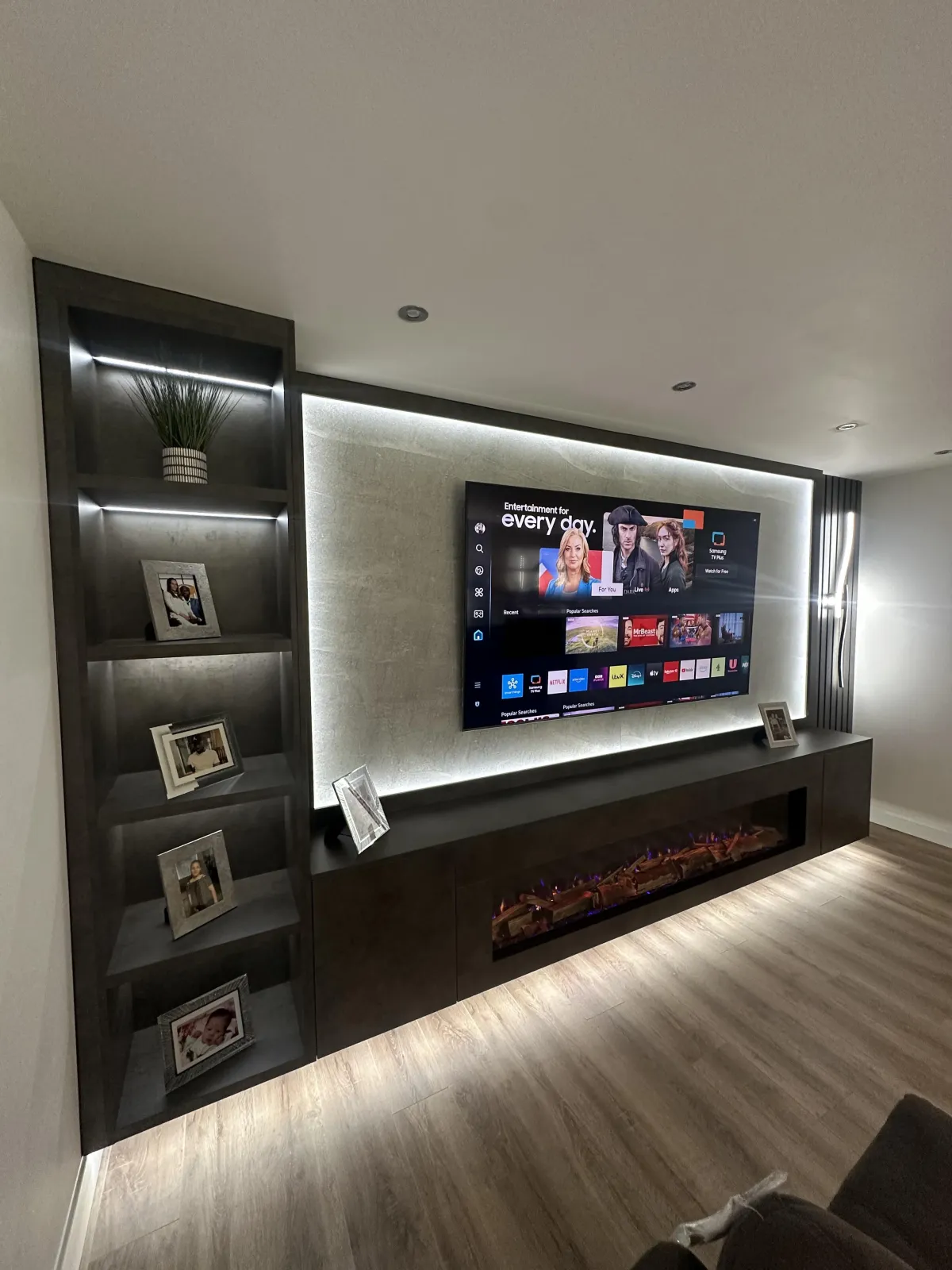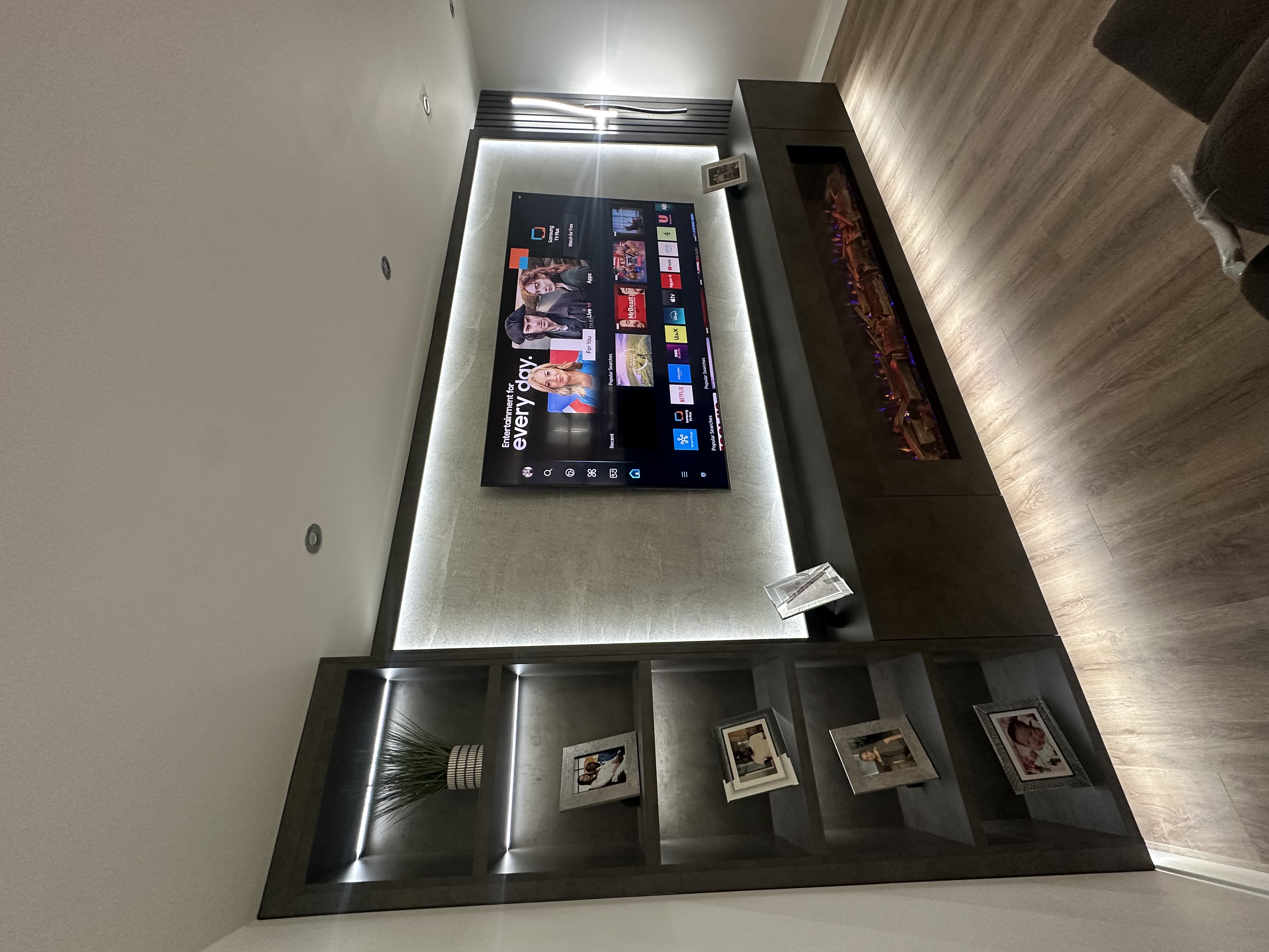 We cover everything fitted storage, shelving, TV & soundbar fitting, cable management, lighting setup, fireplace install.